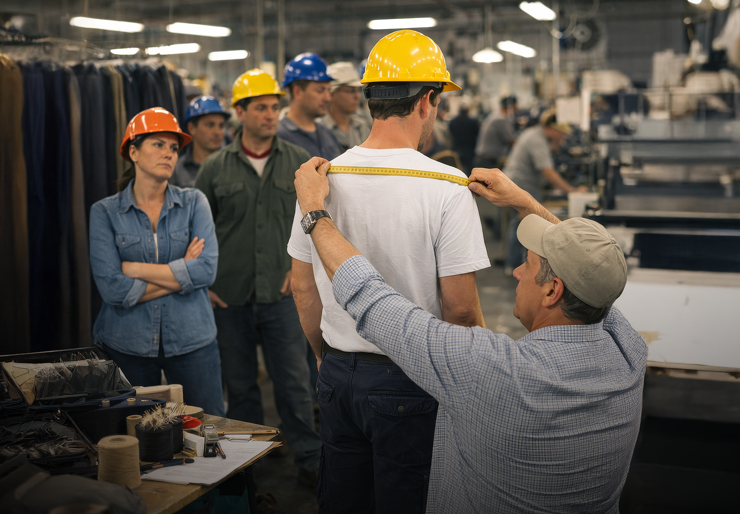 On-Site Measurement in Active Facilities: Unlike retail fitting rooms, industrial sizing happens in working plants, warehouses, and construction sites. Space is limited, privacy is minimal, and the environment is designed for production, not garment fitting.
